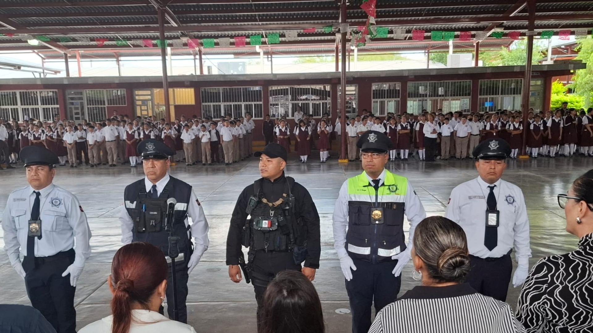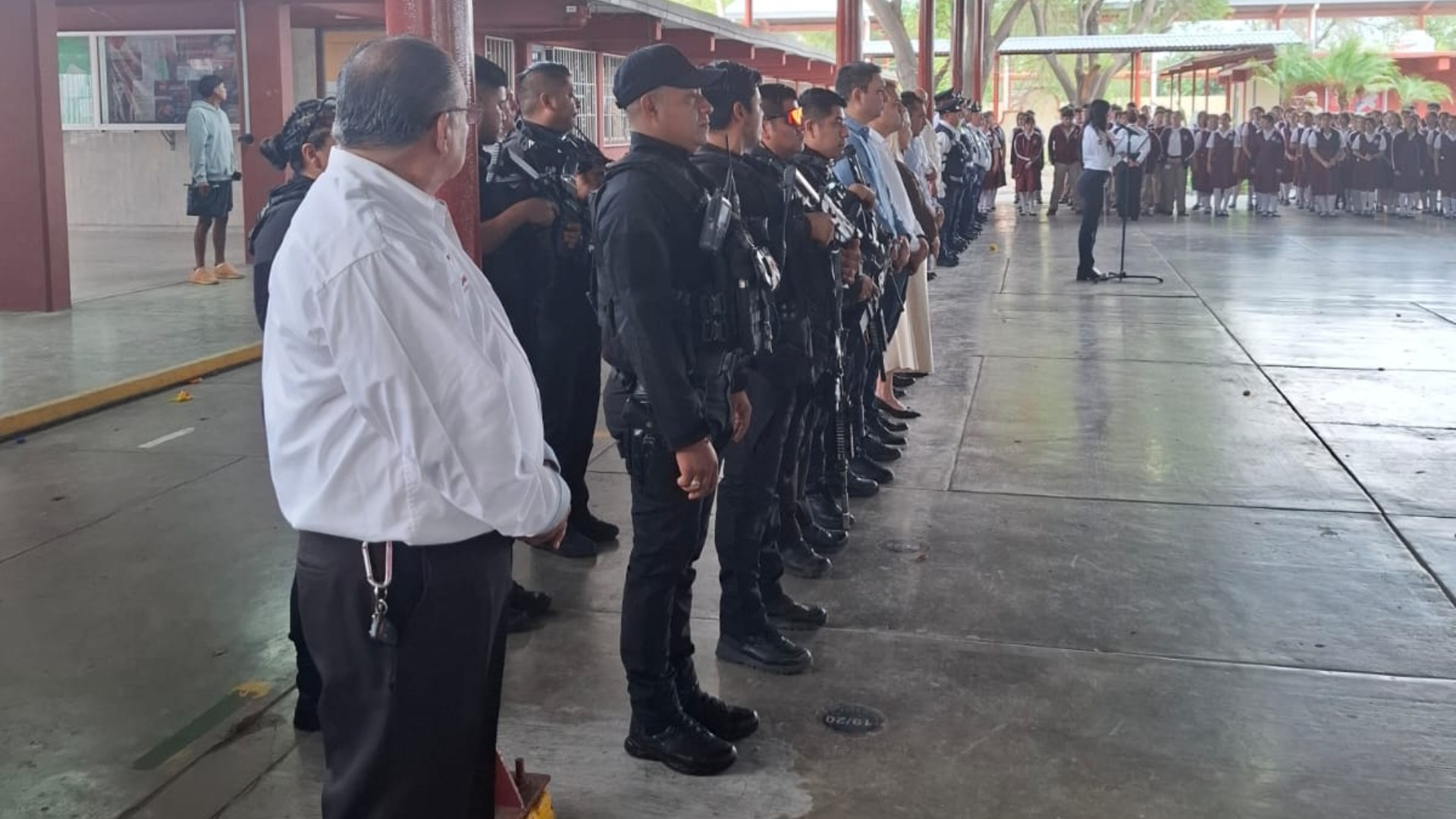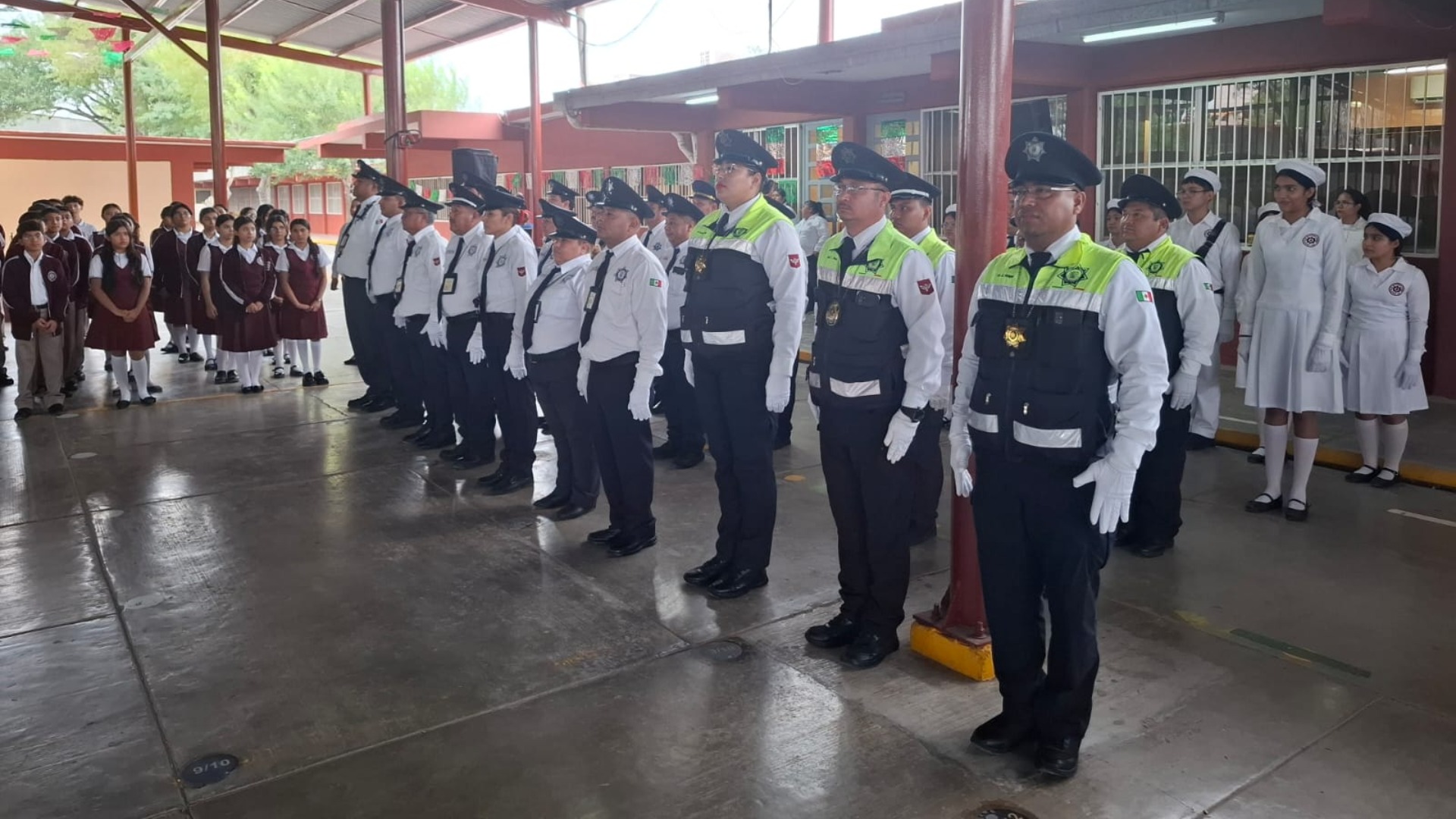 Ceremonia de honores a la bandera y pase de lista a los agentes de vialidad de la Secretaría de Seguridad Pública, con el acompañamiento de regidores del R. Ayuntamiento de Reynosa, promoviendo las campañas "Mi amigo el policía", y "Condúcete bien".